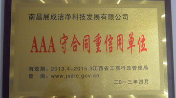 依照《江西省守合同重信用認(rèn)定管理暫行辦法》,日前,江西省工商行政管理局對全省企業(yè)開展調(diào)查、評選,結(jié)合各企業(yè)納稅、信貸、環(huán)境保護(hù)、安全生產(chǎn)、勞動用工、民工工資發(fā)放、訴訟等方面的情況,并分別征求稅務(wù)、銀行等有關(guān)單位的意見,認(rèn)定南昌展成為2012年“江西省守合同重信用AAA單位”。這也是繼入選2010年“南昌市守合同重信用企業(yè)”后,南昌展成在“守合同重信用”領(lǐng)域獲得的又一項榮譽。